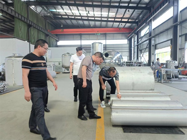 2022年6月15日下午三點,貴州某製藥股份有限公司一行三人在秋立董事雷總,蔣總,項目彭經理的熱情接待下對(duì)秋立生(shēng)產(chǎn)車間進行了考察以及技術交流。三位負責人考察了秋立公司的不(bú)鏽鋼儲罐製造、檢測工藝,純化水設備、多效蒸(zhēng)餾水機等藥廠製水間設備,在考察(chá)的過程中(zhōng),對秋(qiū)立公司的產品表示非常認可(kě),並表示回去會考慮秋立公司的(de)製水設備,我司表示會堅持以提供優質的服務和產品來滿足用戶需求。以下是此次參觀照片: