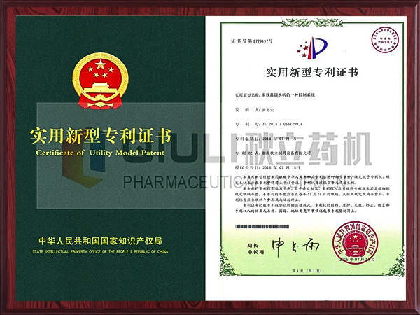 實用新型專利證書-多效蒸餾(liú)水機控製係統