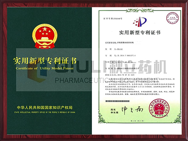 實用新型專利證書-多效蒸餾水機的結構(gòu)